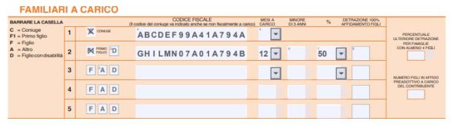 In generale, per sapere qual'è la percentuale corretta di detrazione ad esempio dei figli, bisogna mettere a confronto i redditi dei due coniugi, risultano dalle CU in possesso, e se uno dei due dovesse avere un reddito imponibile più alto, sicuramente la percentuale di detrazione, è meglio attribuirla al 50% ad ognuno.